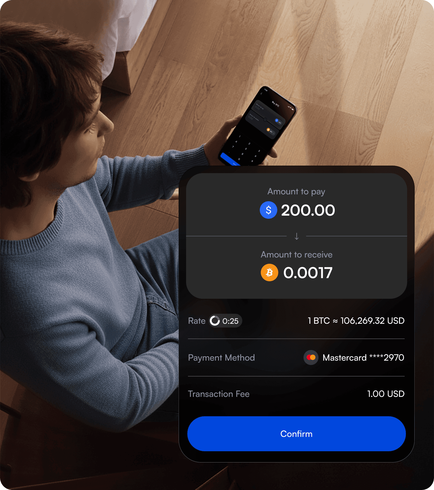 My challenge was to make buying crypto feel as familiar and effortless as a normal online purchase. Instead of complex trading screens users can simply pick a coin, choose an amount, and pay directly with their card - just like they’d buy something from an online store. This approach helped us remove friction and make crypto feel approachable.